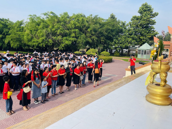 Đầu tiên, các thầy cô giáo cùng các em học sinh đã viếng thăm và dâng hương tại Khu di tích Chiến thắng Rạch Gầm - Xoài Mút. Tại đây, các em được nghe giới thiệu lại cuộc chiến chống giặc Xiêm và tàn quân của Nguyễn Ánh của anh em nhà Tây Sơn Nguyễn Huệ,....