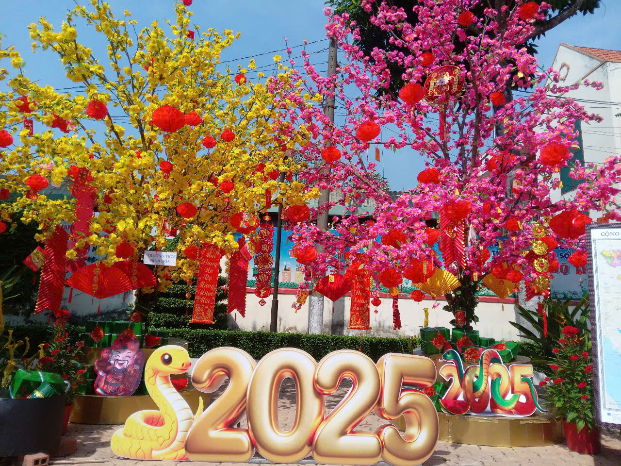 Trong chuỗi hoạt động, nhà trường đã tham gia trang trí cây Mai, cây Đào - biểu tượng không thể thiếu của mùa xuân Việt Nam.