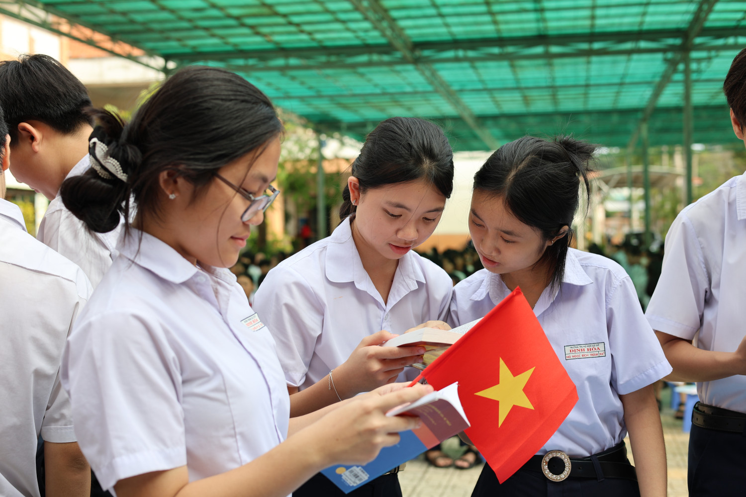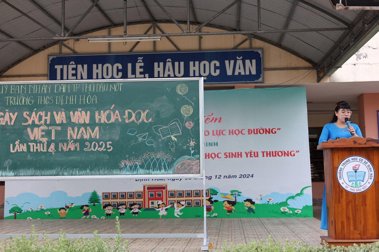Sáng ngày 28/4/2025, trường THCS Định Hòa đã tổ chức hoạt động hưởng ứng "Ngày Sách và Văn hóa đọc Việt Nam" lần thứ 4 trong không khí sôi nổi, hào hứng. Tham dự chương trình có cô Trần Nguyễn Thanh Tuyền - Hiệu trưởng nhà trường, cô Lê Thị Hoàng Vân - Phó Hiệu trưởng, cùng toàn thể giáo viên chủ nhiệm và hơn 500 học sinh khối 7 và 9.
