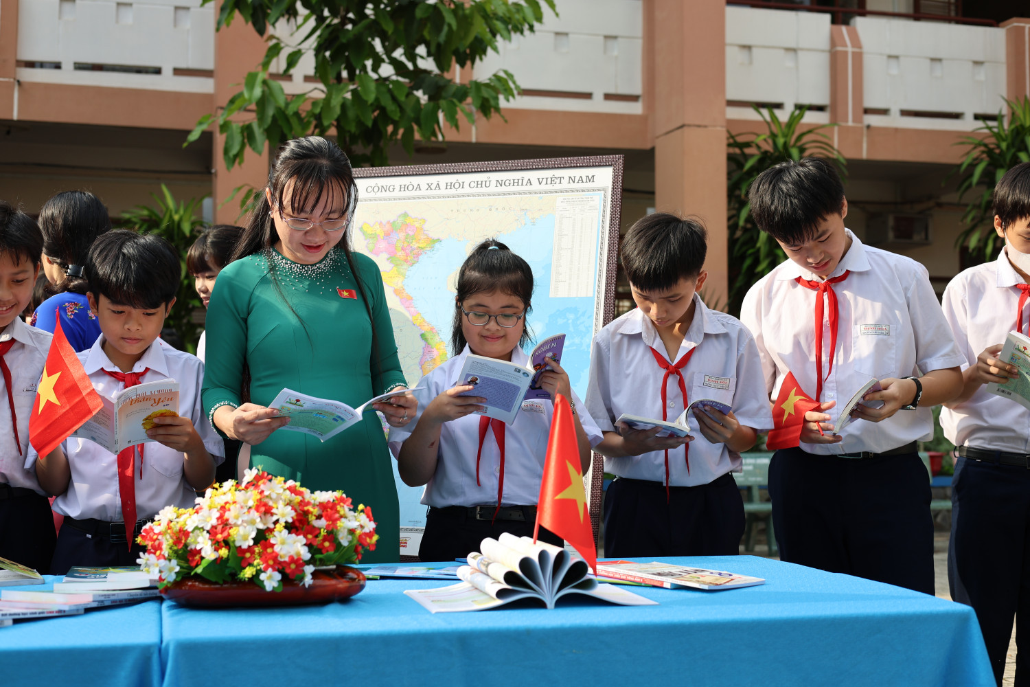 Đặc biệt, nhằm thúc đẩy ứng dụng công nghệ trong học tập và nâng cao hiệu quả đọc sách, cán bộ thư viện nhà trường cũng đã hướng dẫn học sinh cách truy cập và sử dụng “Thư viện số” - một kho tài nguyên học liệu điện tử đa dạng, giúp các em dễ dàng tìm kiếm tài liệu phục vụ cho việc học tập, nghiên cứu.